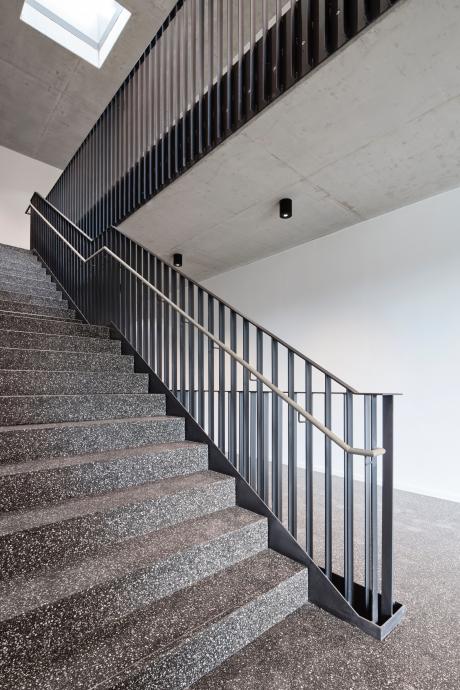 - Trittstufen aus BituTerrazzo: ca. 665 lfm Treppenstufen aus gleichem Material inkl. präziser Kantenbearbeitung.